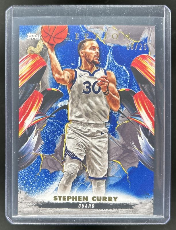The Stephen Curry 2024 Topps Inception #69 Blue /25 card is 1 of 23 Stephen Curry's card variations in the 2024 Topps Inception set being tracked by Sports Card Investor, including Base, Purple /150, Pink /99, Red /75, and Holo Gold /50.