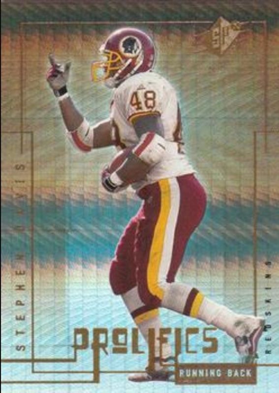 The Stephen Davis 2000 SPx #P1 Prolifics card is 1 of 4 Stephen Davis' card variations in the 2000 SPx set being tracked by Sports Card Investor, including Base /1350, Spectrum /25, and SPxtreme.