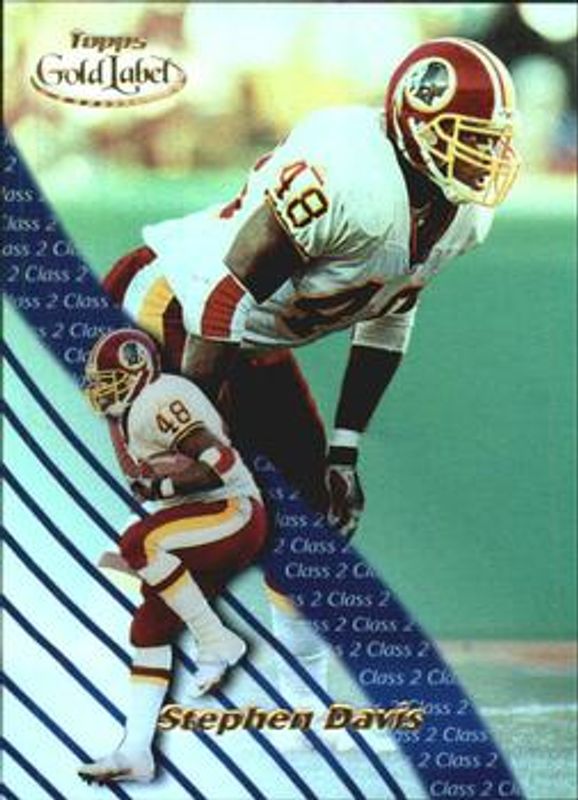 The Stephen Davis 2000 Topps Gold Label #59 Class 2 card is 1 of 4 Stephen Davis' card variations in the 2000 Topps Gold Label set being tracked by Sports Card Investor, including Base, Class 3, and Premium /1000.