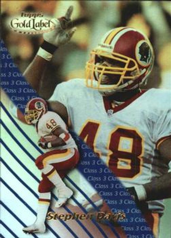 The Stephen Davis 2000 Topps Gold Label #59 Class 3 card is 1 of 4 Stephen Davis' card variations in the 2000 Topps Gold Label set being tracked by Sports Card Investor, including Base, Class 2, and Premium /1000.