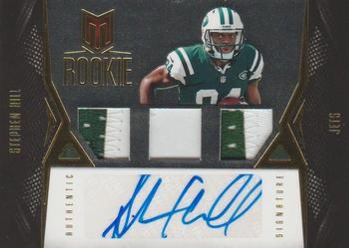The Stephen Hill 2012 Momentum #133 Gold /49 Rookie card is 1 of 27 Stephen Hill's card variations in the 2012 Momentum set being tracked by Sports Card Investor, including Base /699, Platinum /25, Black /5, Printing Plates Black /1, and Printing Plates Cyan /1.