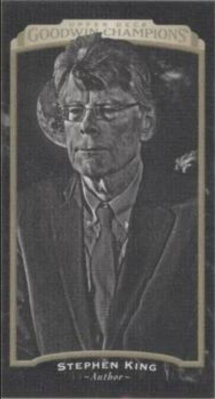 The Stephen King 2017 Upper Deck Goodwin Champions #150 Canvas Minis card is 1 of 56 Stephen King's card variations in the 2017 Upper Deck Goodwin Champions set being tracked by Sports Card Investor, including #150 Base, #50 Base, #50b Base, #100 Base, and Blank Back Mini.