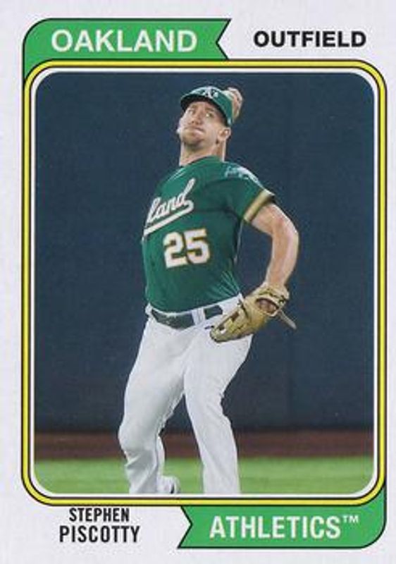 The Stephen Piscotty 2020 Topps Archives #112 Base card is 1 of 10 Stephen Piscotty's card variations in the 2020 Topps Archives set being tracked by Sports Card Investor, including Silver Holo-Foil, Purple /175, Silver /99, Red /75, and Blue /25.