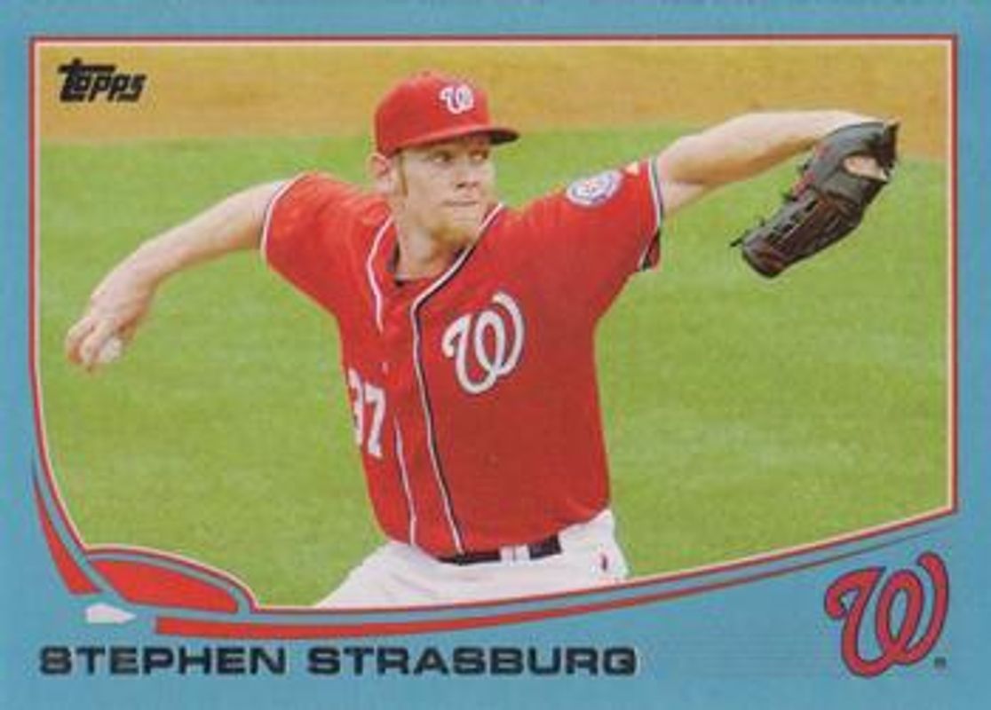 The Stephen Strasburg 2013 Topps #500 Blue card is 1 of 34 Stephen Strasburg's card variations in the 2013 Topps set being tracked by Sports Card Investor, including 1972 Topps Minis, Base, Chasing History, Chasing History - Gold Foil, and Chasing History Relics.