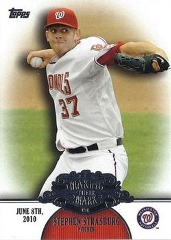 The Stephen Strasburg 2013 Topps #MM-25 Making Their Mark card is 1 of 34 Stephen Strasburg's card variations in the 2013 Topps set being tracked by Sports Card Investor, including 1972 Topps Minis, Base, Chasing History, Chasing History - Gold Foil, and Chasing History Relics.