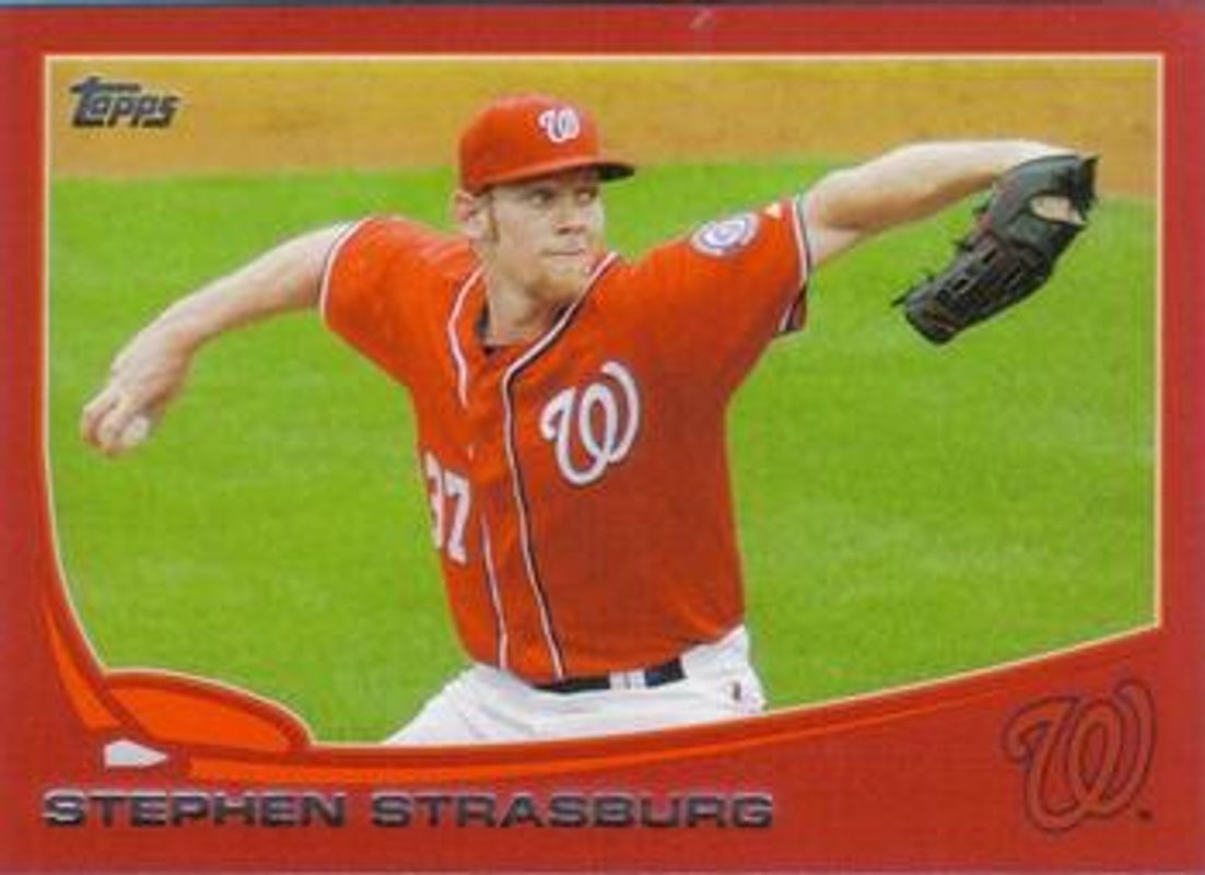 The Stephen Strasburg 2013 Topps #500 Red card is 1 of 34 Stephen Strasburg's card variations in the 2013 Topps set being tracked by Sports Card Investor, including 1972 Topps Minis, Base, Chasing History, Chasing History - Gold Foil, and Chasing History Relics.
