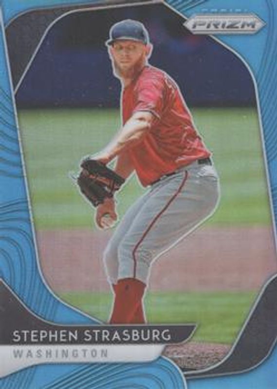 The Stephen Strasburg 2020 Prizm #93 Carolina Blue card is 1 of 71 Stephen Strasburg's card variations in the 2020 Prizm set being tracked by Sports Card Investor, including Base, Blue, Cosmic Haze, Pink, and Purple.