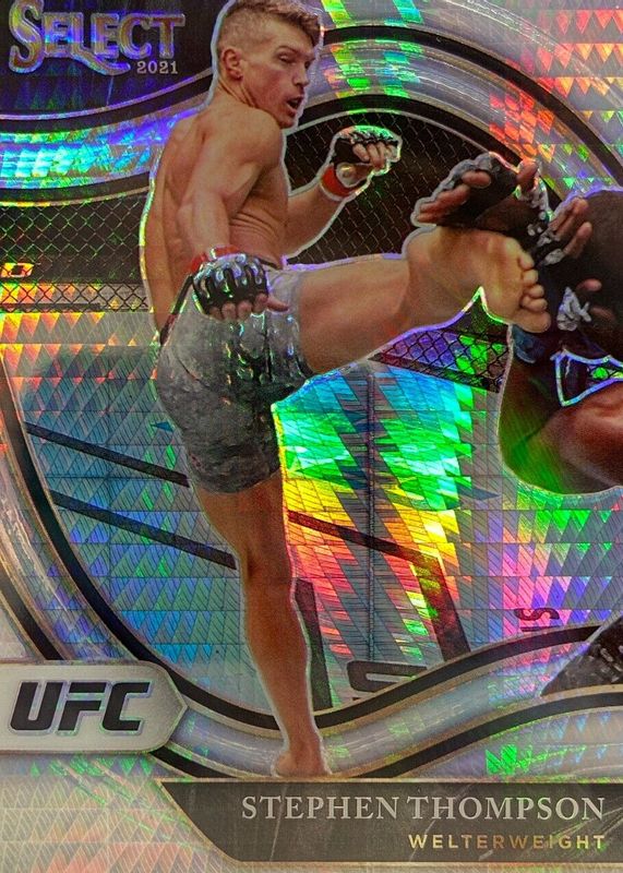 This card is 1 of 48 Stephen Thompson's card variations in the 2021 Select UFC set being tracked by Sports Card Investor, including Concourse Disco, Concourse Scope, Concourse Silver, Concourse Tri-Color, and Octagonside Disco.