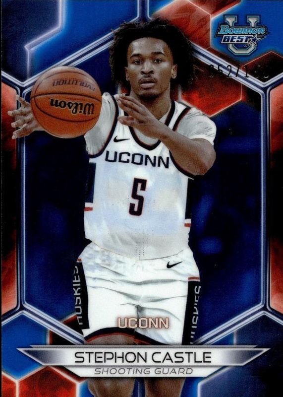 This card is 1 of 78 Stephon Castle's card variations in the 2023 Bowman Best University set being tracked by Sports Card Investor, including Base, Refractor, Speckle Refractor, Pink Lava Refractor /100, and Green Mini-Diamond Refractor /99.