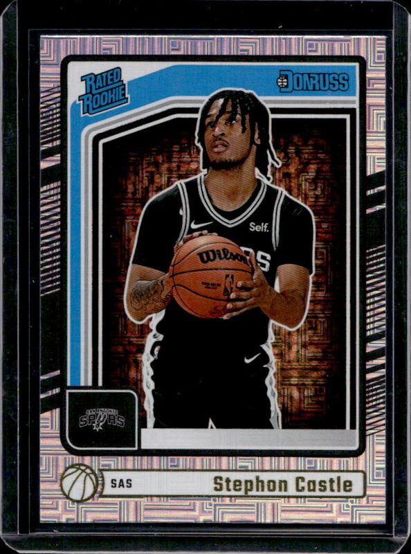 The Stephon Castle 2024 Donruss #244 Choice Rookie card is 1 of 103 Stephon Castle's card variations in the 2024 Donruss set being tracked by Sports Card Investor, including Base, Disco, Holo Green Laser, International, and International Holo Maroon Laser.