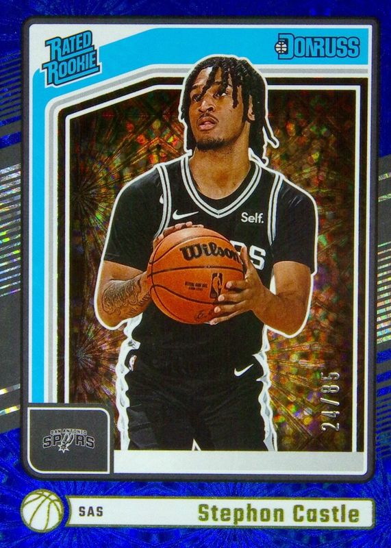 This card is 1 of 72 Stephon Castle's card variations in the 2024 Donruss set being tracked by Sports Card Investor, including Base, Disco, Holo Green Laser, International, and International Holo Maroon Laser.