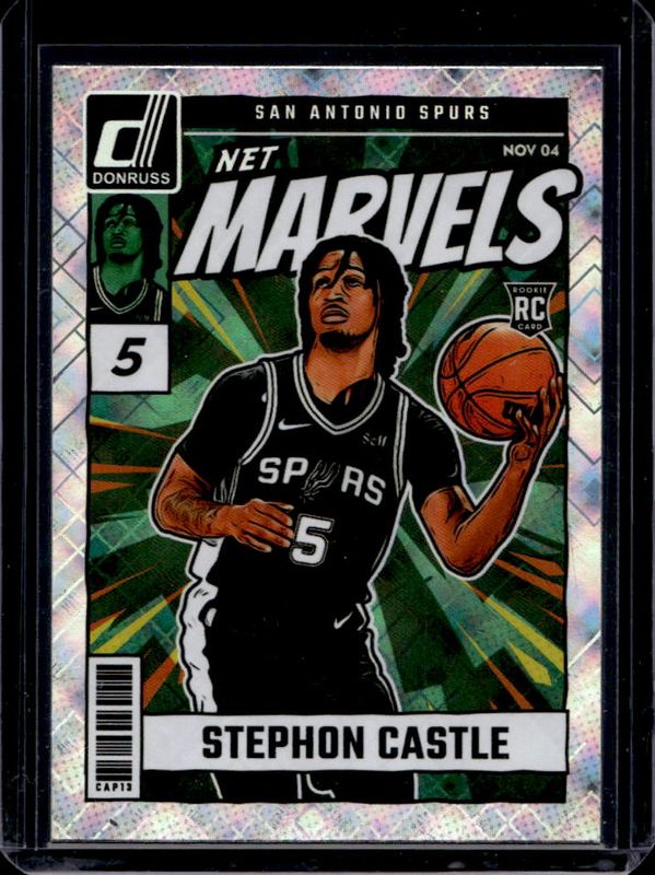 The Stephon Castle 2024 Donruss #23 Net Marvels - Diamond Rookie card is 1 of 103 Stephon Castle's card variations in the 2024 Donruss set being tracked by Sports Card Investor, including Base, Choice, Disco, Holo Green Laser, and International.