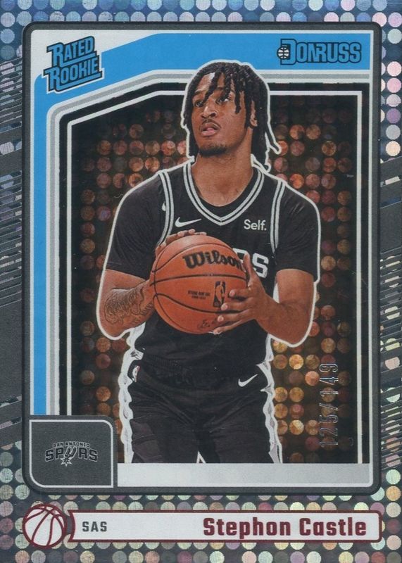 This card is 1 of 103 Stephon Castle's card variations in the 2024 Donruss set being tracked by Sports Card Investor, including Base, Choice, Disco, Holo Green Laser, and International.