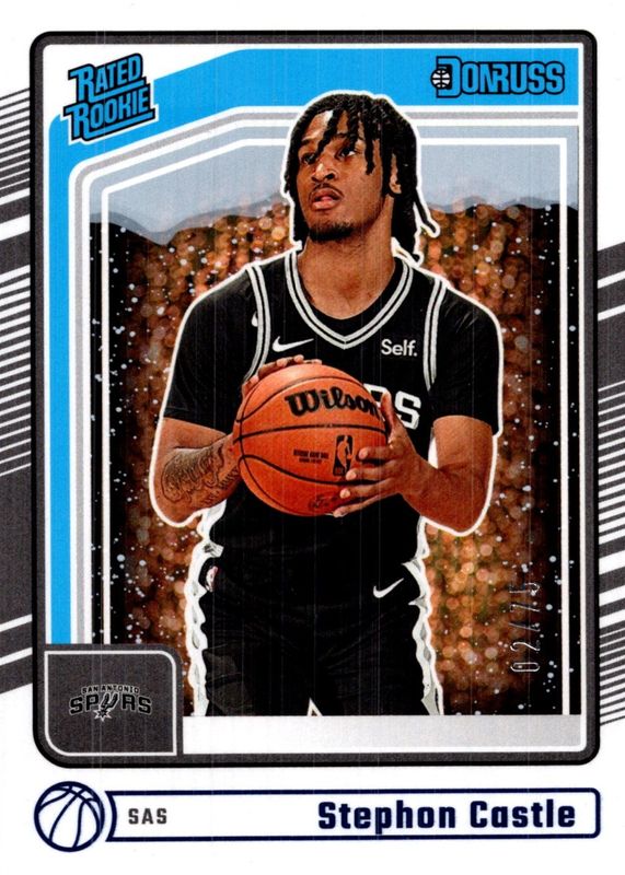 This card is 1 of 72 Stephon Castle's card variations in the 2024 Donruss set being tracked by Sports Card Investor, including Base, Disco, Holo Green Laser, International, and International Holo Maroon Laser.