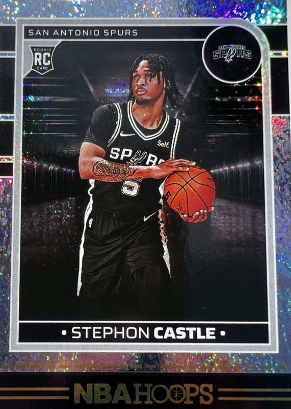 This card is 1 of 60 Stephon Castle's card variations in the 2024 Hoops set being tracked by Sports Card Investor, including Base, Blue, Premium, Premium Checkerboard, and Premium Green.