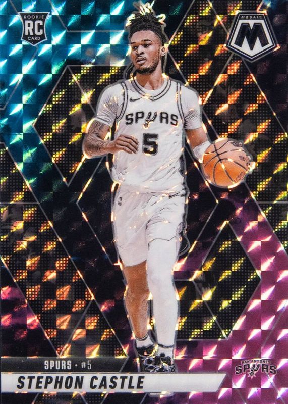 This card is 1 of 301 Stephon Castle's card variations in the 2024 Mosaic set being tracked by Sports Card Investor, including Base, City Edition, NBA Debut, Choice Red & Green, and City Edition - Choice Red & Green.