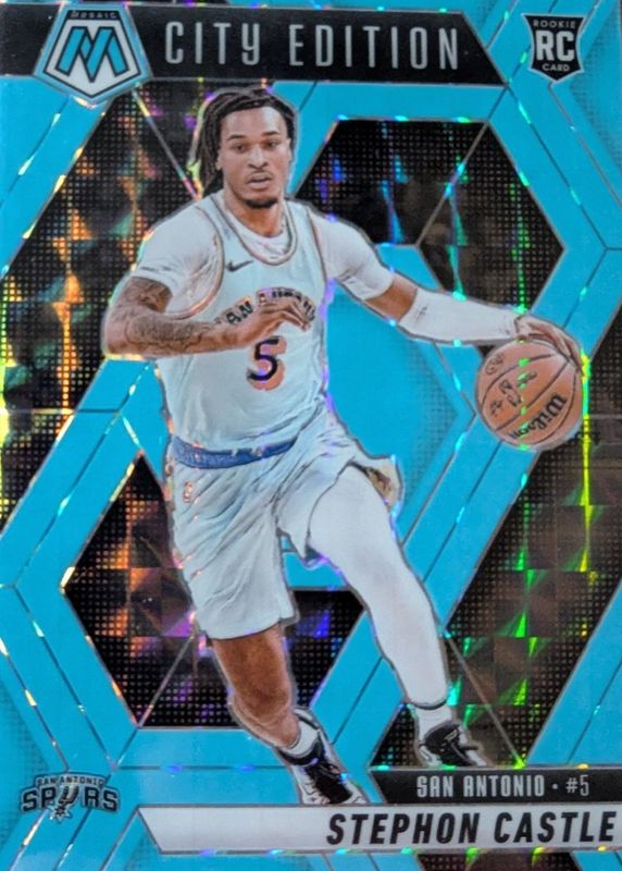 2024-25 Mosaic Basketball Stephon Castle Blue Flourescent City Edition /75 RC