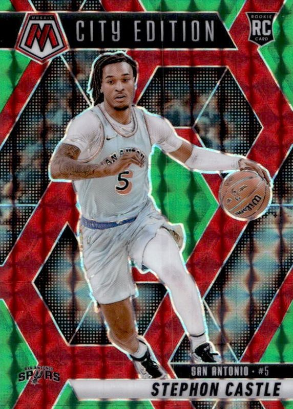 This card is 1 of 203 Stephon Castle's card variations in the 2024 Mosaic set being tracked by Sports Card Investor, including Base, City Edition, NBA Debut, Choice Red & Green, and City Edition - Fast Break.