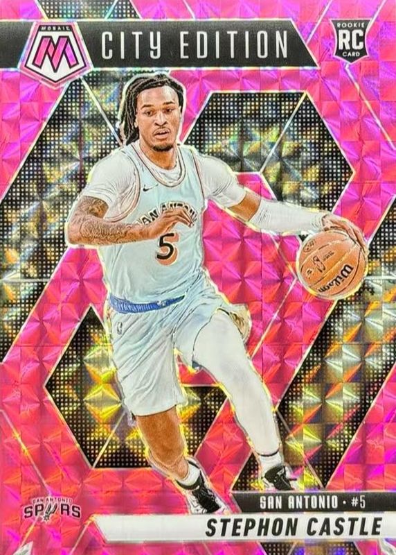 2024-25 Mosaic Stephon Castle City Edition Pink Mosaic Rookie RC /175 - Spurs