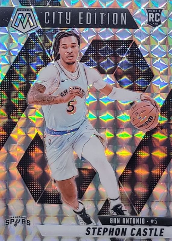The Stephon Castle 2024 Mosaic #290 City Edition - Silver Rookie card in Raw condition has moved up $0.36 (+23.8%) in the last 30 days and was last sold for $1.86 .