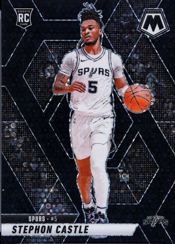 This card is 1 of 301 Stephon Castle's card variations in the 2024 Mosaic set being tracked by Sports Card Investor, including Base, City Edition, NBA Debut, Choice Red & Green, and City Edition - Choice Red & Green.