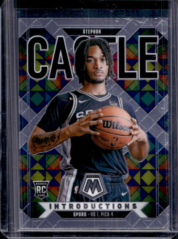 The Stephon Castle 2024 Mosaic #20 Introductions Rookie card is 1 of 301 Stephon Castle's card variations in the 2024 Mosaic set being tracked by Sports Card Investor, including Base, City Edition, NBA Debut, Choice Red & Green, and City Edition - Choice Red & Green.