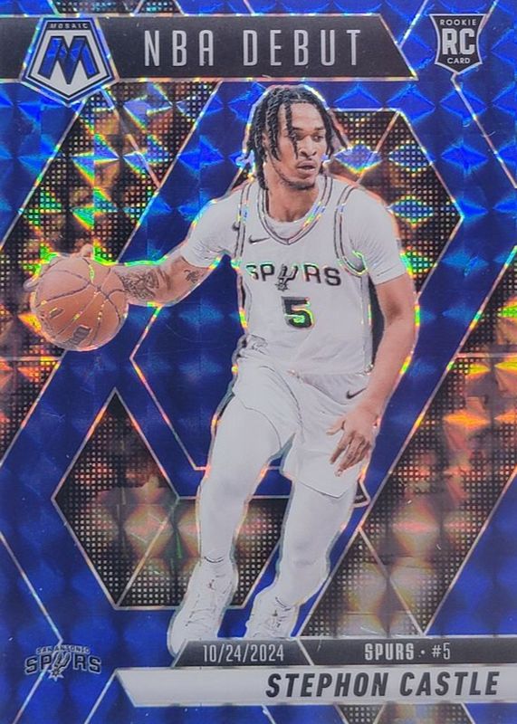 Stephon Castle 2024-25 Mosaic NBA Debut Blue Prizm RC #113/199 San Antonio Spurs