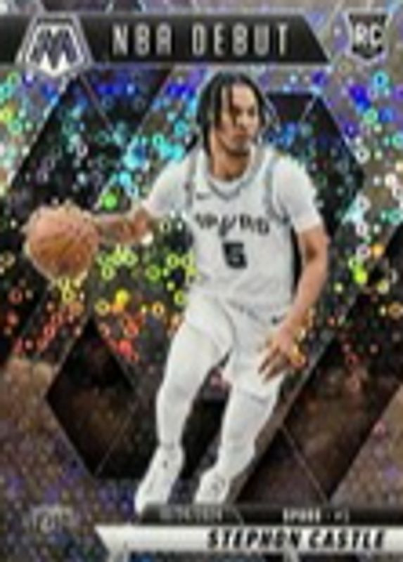 The Stephon Castle 2024 Mosaic #267 NBA Debut - Fast Break Rookie card in Raw condition has moved up $0.53 (+9.6%) in the last 30 days and was last sold for $6.00 .