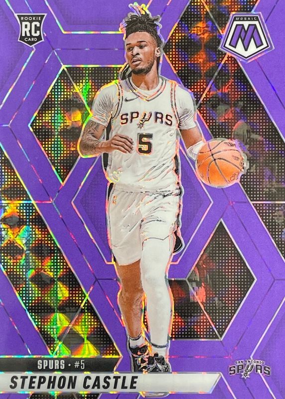 The Stephon Castle 2024 Mosaic #236 Purple Fluorescent /249 Rookie card in Raw condition has moved up $6.50 (+46.4%) in the last 30 days and was last sold for $20.50 .