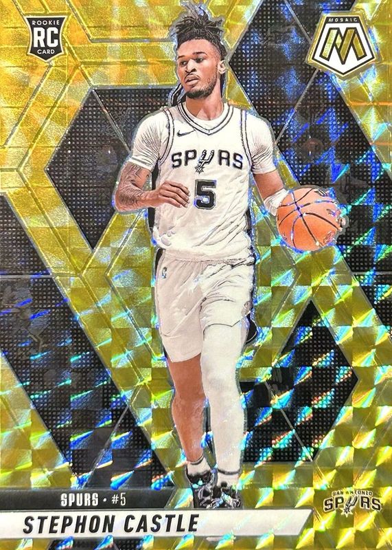2024-25 Panini Mosaic #236 Stephon Castle Spurs Reactive Yellow Mosaic RC