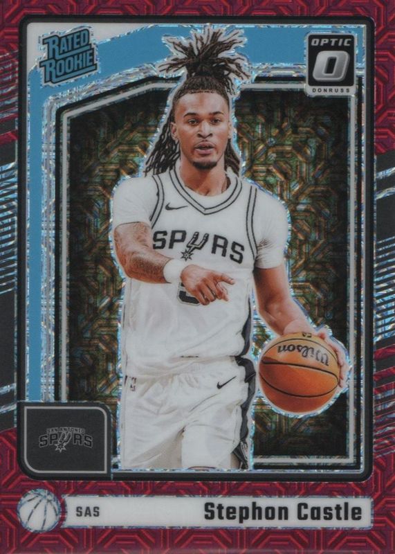 This card is 1 of 219 Stephon Castle's card variations in the 2024 Optic set being tracked by Sports Card Investor, including Base, Blue Velocity, Checkerboard, Choice, and Fast Break.