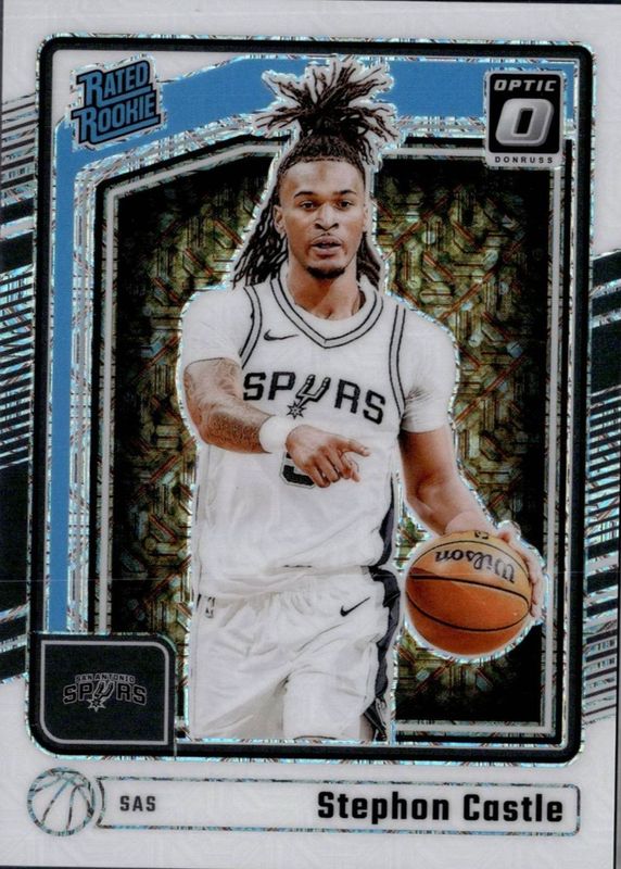 This card is 1 of 219 Stephon Castle's card variations in the 2024 Optic set being tracked by Sports Card Investor, including Base, Blue Velocity, Checkerboard, Choice, and Fast Break.