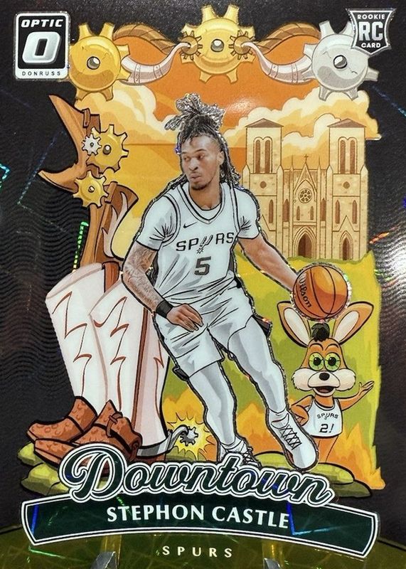 The Stephon Castle 2024 Optic #20 Downtown - Gold /10 Rookie card in Raw condition has not changed in price in the last 30 days and was last sold for $9,000.00 .