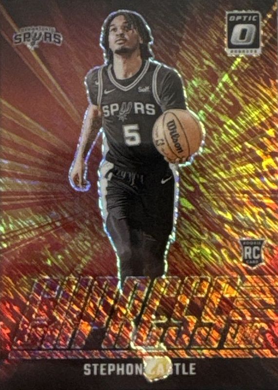 This card is 1 of 220 Stephon Castle's card variations in the 2024 Optic set being tracked by Sports Card Investor, including Base, Blue Velocity, Checkerboard, Choice, and Fast Break.