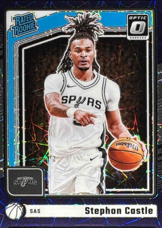 This card is 1 of 220 Stephon Castle's card variations in the 2024 Optic set being tracked by Sports Card Investor, including Base, Blue Velocity, Checkerboard, Choice, and Fast Break.