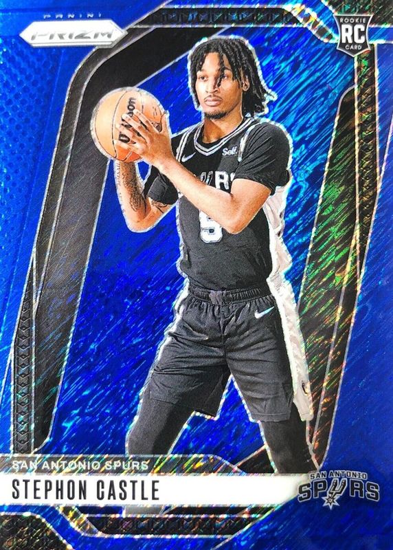 2024-25 PANINI PRIZM #234 STEPHON CASTLE BLUE SHIMMER FOTL /35 ROOKIE RC Spurs