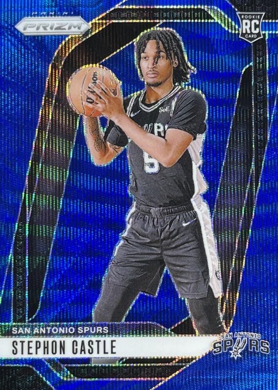 The Stephon Castle 2024 Prizm #234 Blue Wave /125 Rookie card in Raw condition has moved up $24.50 (+18.8%) in the last 30 days and was last sold for $154.50 .