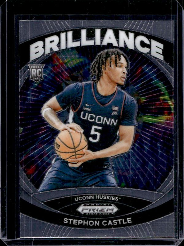The Stephon Castle 2024 Prizm Draft Picks #4 Brilliance Rookie card is 1 of 162 Stephon Castle's card variations in the 2024 Prizm Draft Picks set being tracked by Sports Card Investor, including #17b Base, #17 Base, #17 Variation, #17b Green, and #17 Green.
