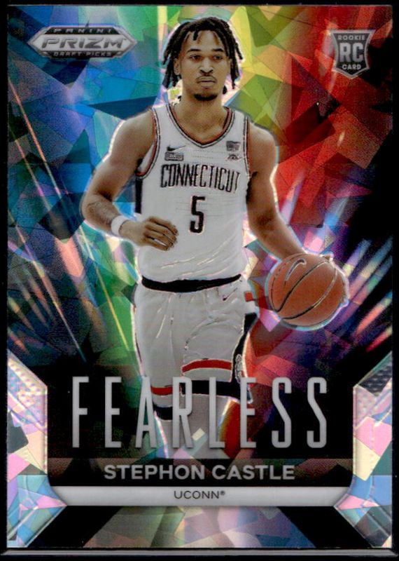 The Stephon Castle 2024 Prizm Draft Picks #25 Fearless - Ice Rookie card is 1 of 162 Stephon Castle's card variations in the 2024 Prizm Draft Picks set being tracked by Sports Card Investor, including #17b Base, #17 Base, #17 Variation, #17b Green, and #17 Green.