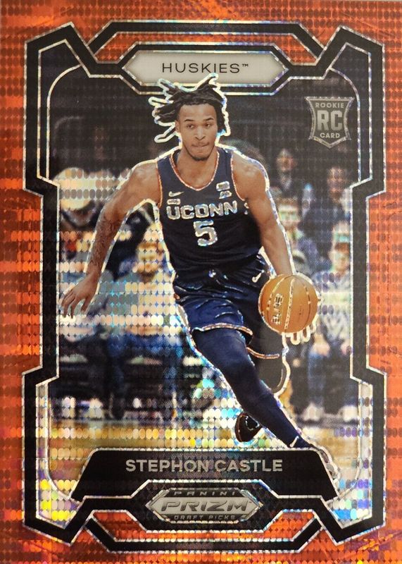 The Stephon Castle 2024 Prizm Draft Picks #17 Red Pulsar /299 Rookie card in Raw condition has moved up $3.00 (+37.5%) in the last 30 days and was last sold for $11.00 .