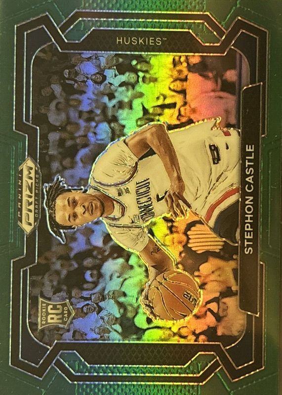The Stephon Castle 2024 Prizm Draft Picks #17 Variation - Green Rookie card in Raw condition has moved down -$2.01 (-67.0%) in the last 30 days and was last sold for $0.99 .