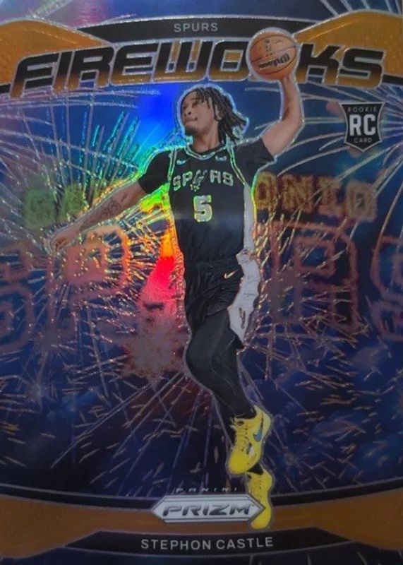 2024-25 Panini Prizm Stephon Castle Fireworks Orange 2/49 Rookie RC #13 Spurs