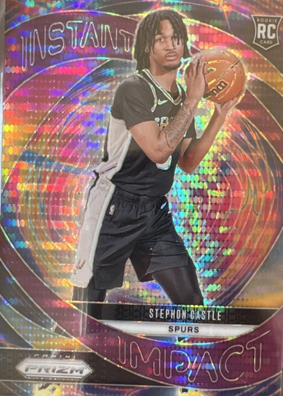 The Stephon Castle 2024 Prizm #4 Instant Impact - Purple Pulsar /35 Rookie card in Raw condition has not changed in price in the last 30 days and was last sold for $90.00 .