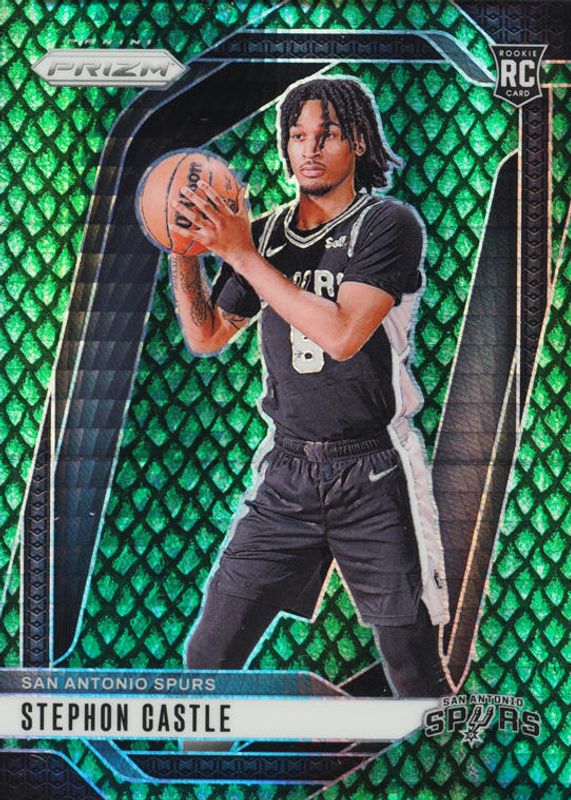 This card is 1 of 143 Stephon Castle's card variations in the 2024 Prizm set being tracked by Sports Card Investor, including Base, China Variation, Choice Blue Yellow Green, Fast Break, and Green.
