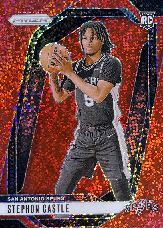 The Stephon Castle 2024 Prizm #234 Red Sparkle /(SSP) Rookie card in Raw condition has moved up $4.27 (+4.1%) in the last 30 days and was last sold for $109.02 .