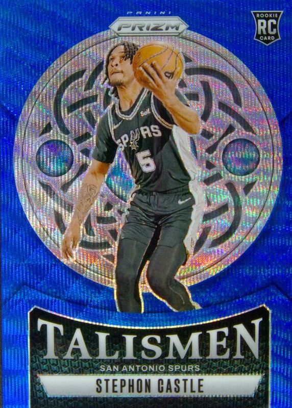 The Stephon Castle 2024 Prizm #14 Talismen - Blue Wave /175 Rookie card in Raw condition has moved up $0.72 (+6.3%) in the last 30 days and was last sold for $12.23 .