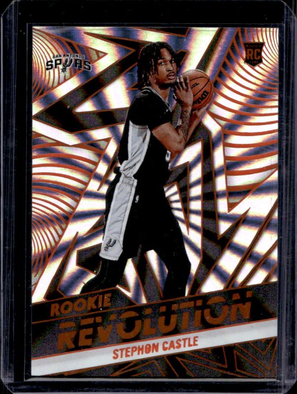 The Stephon Castle 2024 Revolution #2 Rookie Revolution - Sunburst /75 card is 1 of 102 Stephon Castle's card variations in the 2024 Revolution set being tracked by Sports Card Investor, including Base, Astro, Blue Storm, Chinese New Year, and Fractal.