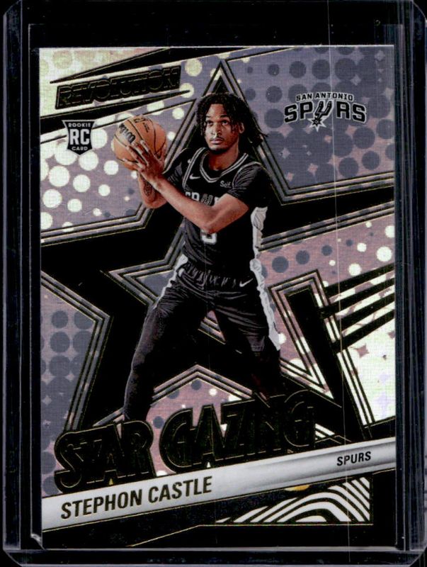The Stephon Castle 2024 Revolution #4 Star Gazing Rookie card is 1 of 102 Stephon Castle's card variations in the 2024 Revolution set being tracked by Sports Card Investor, including Base, Astro, Blue Storm, Chinese New Year, and Fractal.