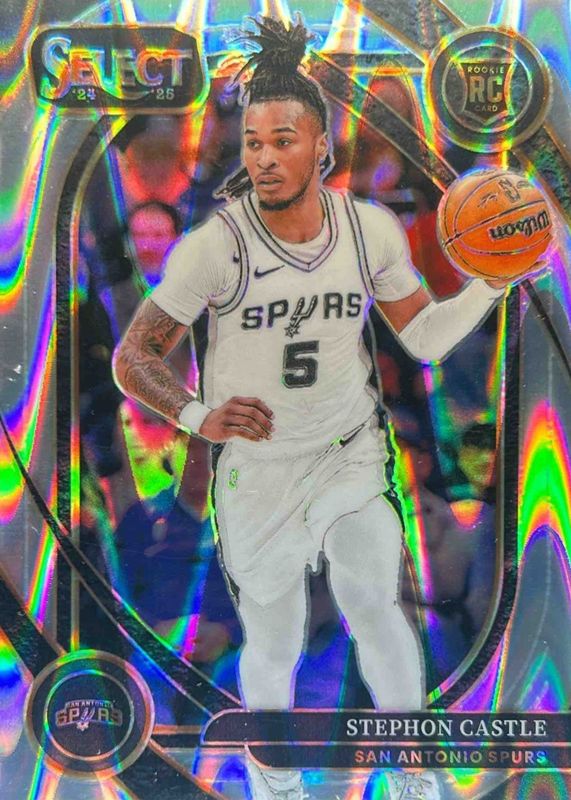 2024-25 Panini Select Basketbal Stephon Castle Courtside RC Tectonic Prizm Spurs