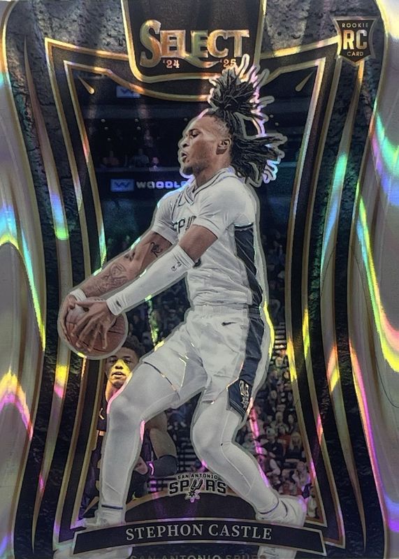 The Stephon Castle 2024 Select #388 Mezzanine Tectonic Rookie card in Raw condition has moved up $8.29 (+92.2%) in the last 30 days and was last sold for $17.28 .